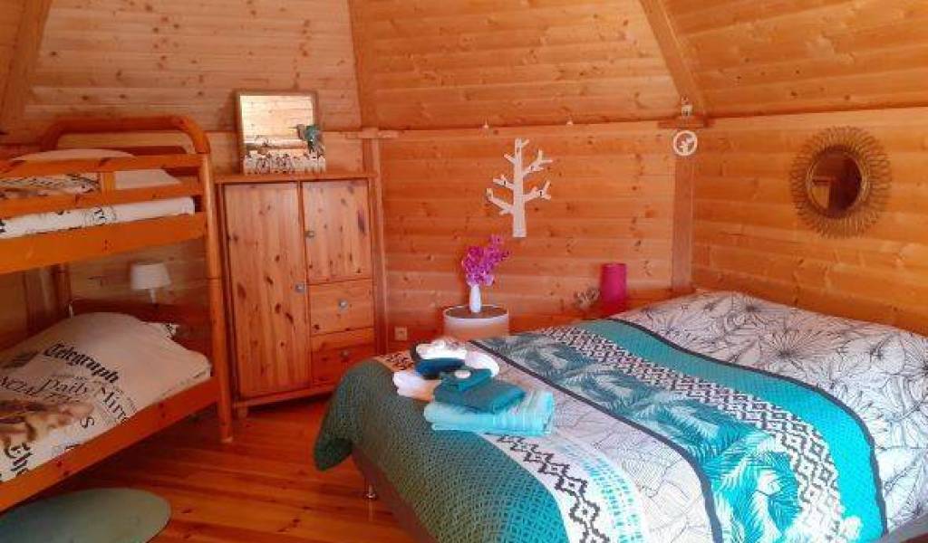 Composé d’une pièce à vivre avec cuisine équipée (plaque de cuisson, réfrigérateur, micro-onde mini four pour le zen, évier), une chambre pour 4 personnes (un lit de 140 et deux lits superposés), une salle d’eau avec lavabo, douche et WC, une grande terrasse privative avec barbecue.